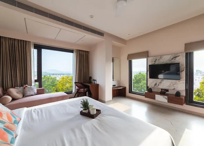 A Pinnacle Udaipur - Boutique Rooftop Pool Hotel, Near The Lakes légkondicionált szobákat kínál ingyenes Wi-Fi-vel és síkképernyős műholdas TV-vel, valamint olyan kényelmi szolgáltatásokkal, mint a vasaló eszközök és klímaberendezés. A hangszigetelt ablakokkal kiegészülő szobákhoz tea- és kávéfőző berendezés szintén tartozik. A külön WC-vel és zuhanyzóval ellátott fürdőszobákban hajszárító és fürdőlepedők is található a vendégek extra kényelme érdekében.